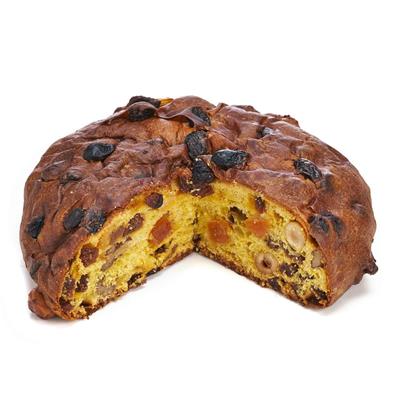 Dolce a lievitazione naturale ricco di frutta candita (scorza di arancia, uvetta), nocciole Piemonte IGP, e noci.